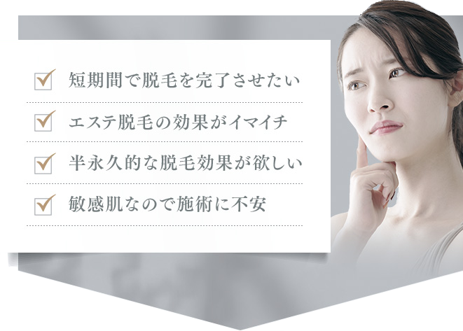 幅広い機器の中から、部位に合わせた医療従事者による高い照射技術で、脱毛が最短で完了できます。