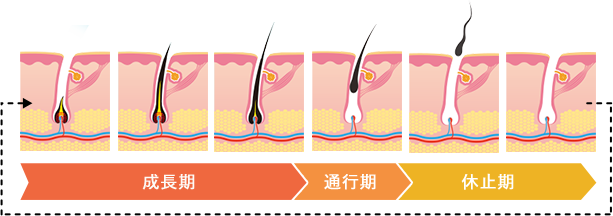 人の毛には「毛周期」と呼ばれるサイクルがあるので、どんな脱毛でも複数回通う必要があります。