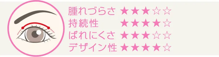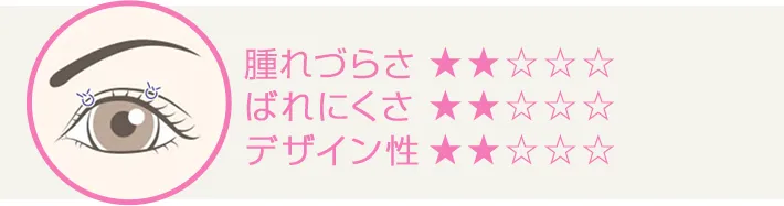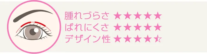 糸の結び目が出ず傷もないため目を閉じたときに自然な印象に。
