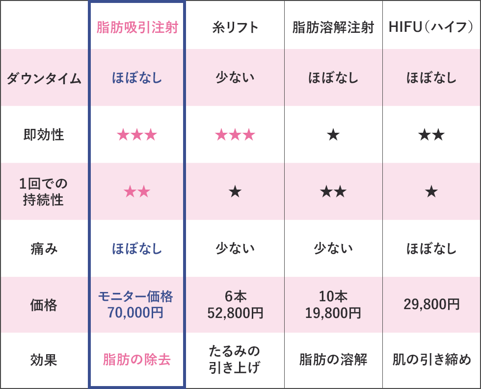 4.HIFU・脂肪溶解注射との違い