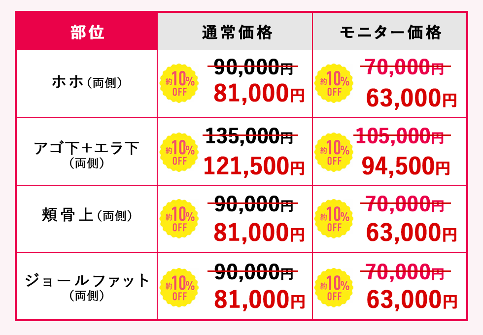 その他の小顔治療を比較していきます。